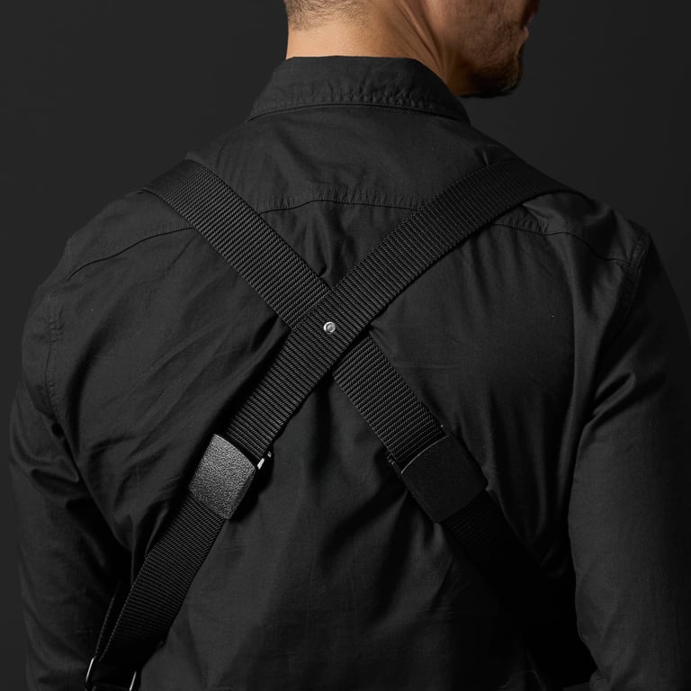 A escolha do material também foi importante. Embora eu goste da estética do couro, um arnês de câmera dupla com os acessórios pode ficar meio pesado e quente (especificamente no Brasil, onde estou baseado). Minha alça personalizada é feita de nylon. Estou pensando em talvez mudar para lona de algodão para mais conforto, como este modelo "Camera Swagg" da Hold Fast, mas por enquanto estou bem feliz com o nylon.